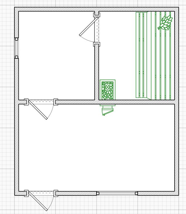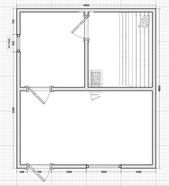 - Внутренняя отделка: осина (парная), сосна (моечная, раздевалка).