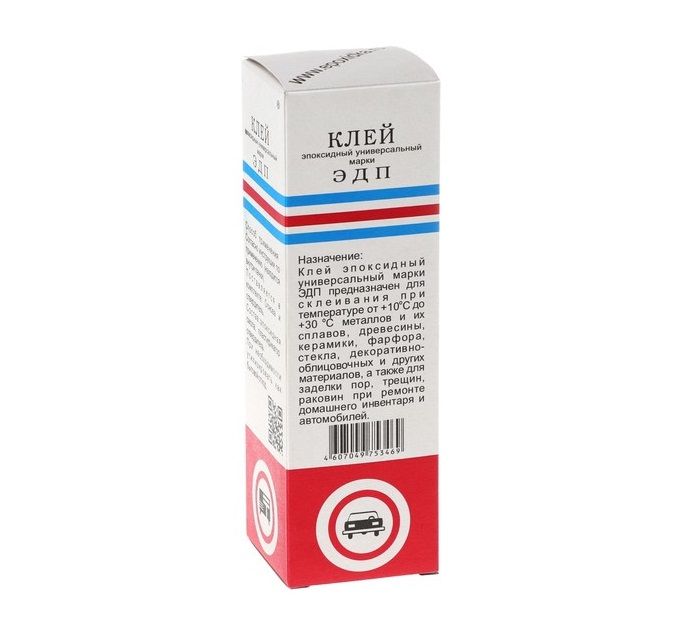 Двухкомпонентный клей ЭДП предназначен для склеивания деревянных, стеклянных, керамических изделий и поверхностей, элементов из металлов и сплавов, а также других материалов. Склеиваемые материалы: металл, фарфор, стекло, дерево, керамика.