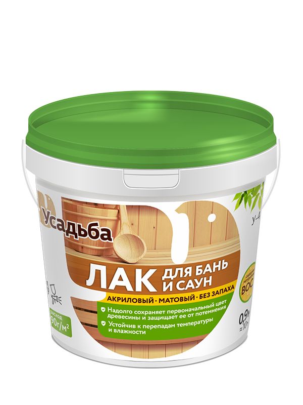 Лак для бань и саун на акриловой основе предназначен для защиты и финишной декоративной отделки деревянных поверхностей. Состав надолго сохраняет первоначальный цвет древесины и защищает ее от потемнения. Лак выдерживает температуру до 150°С и не выделяет вредных веществ. Образует паростойкое «дышащее» покрытие, устойчивое к влажной уборке. Лак подчёркивает естественную структуру древесины. Отсутствие органических растворителей позволяет применять состав в закрытых помещениях.