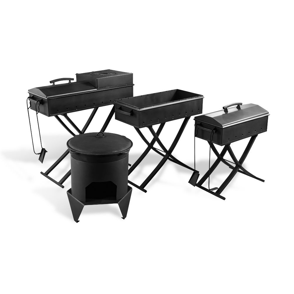 Все мангалы комплектуются совком и кочергой, а мангал 900У - чугунной однокомфорочной плитой для использования куханной утвари и казанов.