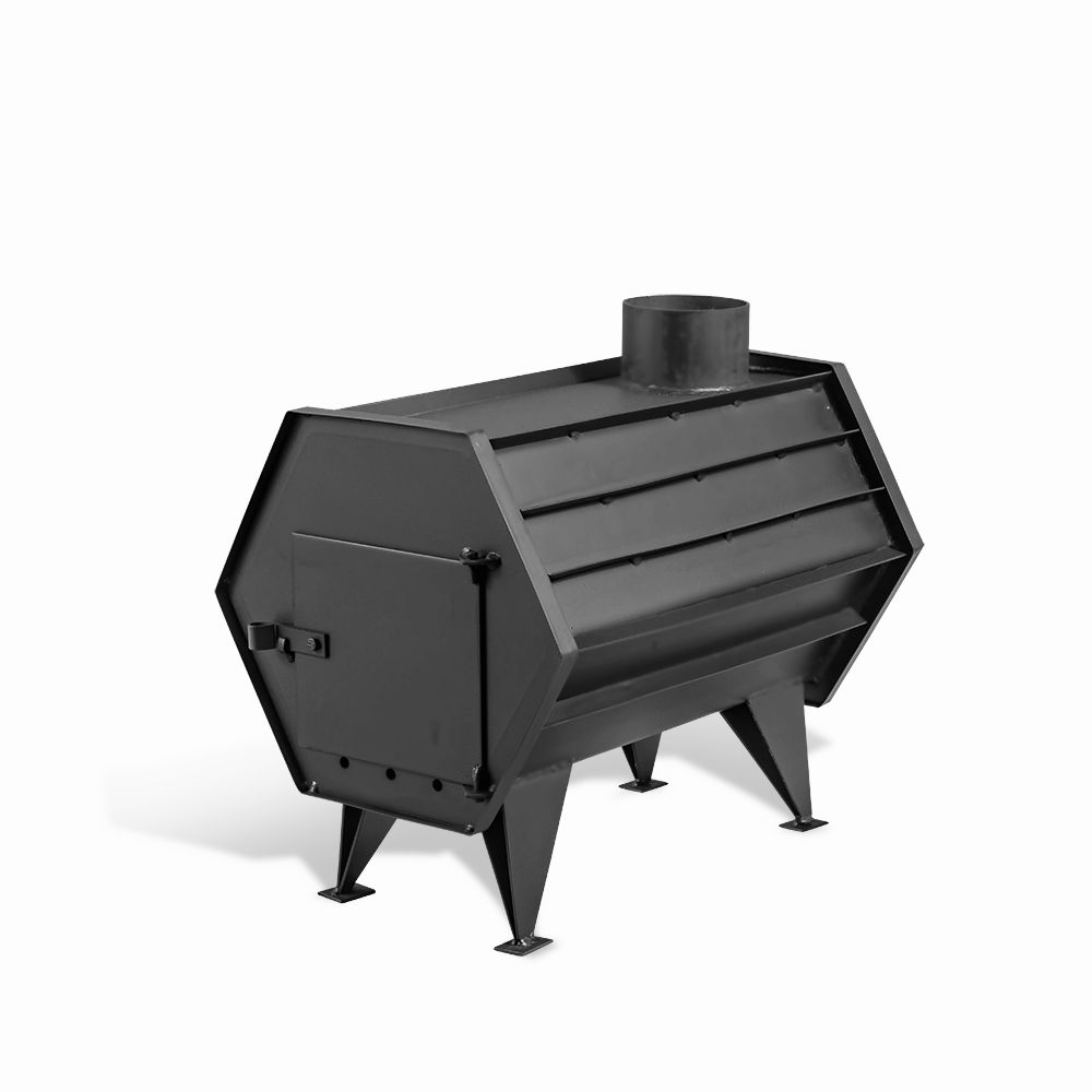 Предназначена для теплоснабжения небольших помещений, садовых домиков, гаражей, подсобных помещений, теплиц и т.д. Отопительная печь бесколосникового типа (буржуйка). Приток свежего воздуха для горения осуществляется через воздухозабор, расположенный в нижней части топки. Топка изготовлена сварочно-гнутым способом. В разрезе печь представляет собой шестиугольник. Такая форма создает ребра жесткости, которые исключают изменение геометрии печи, усиливая тем самым конструкцию. Ребра теплоотдачи служат радиаторами, ускоряющими нагрев помещения и препятствующими перегреву печи.