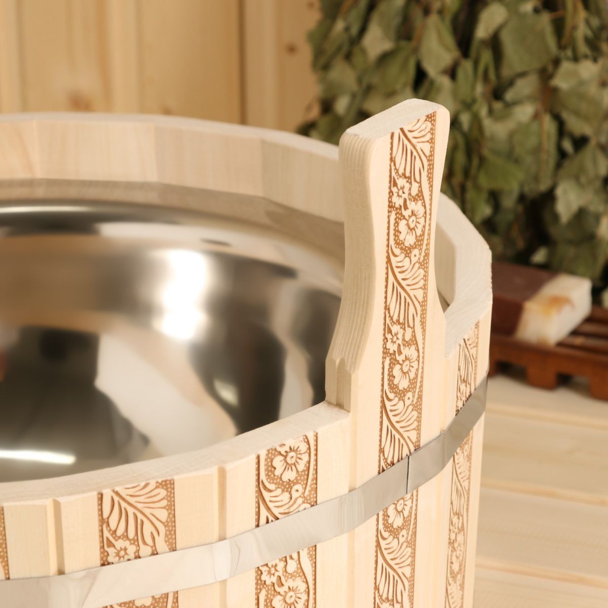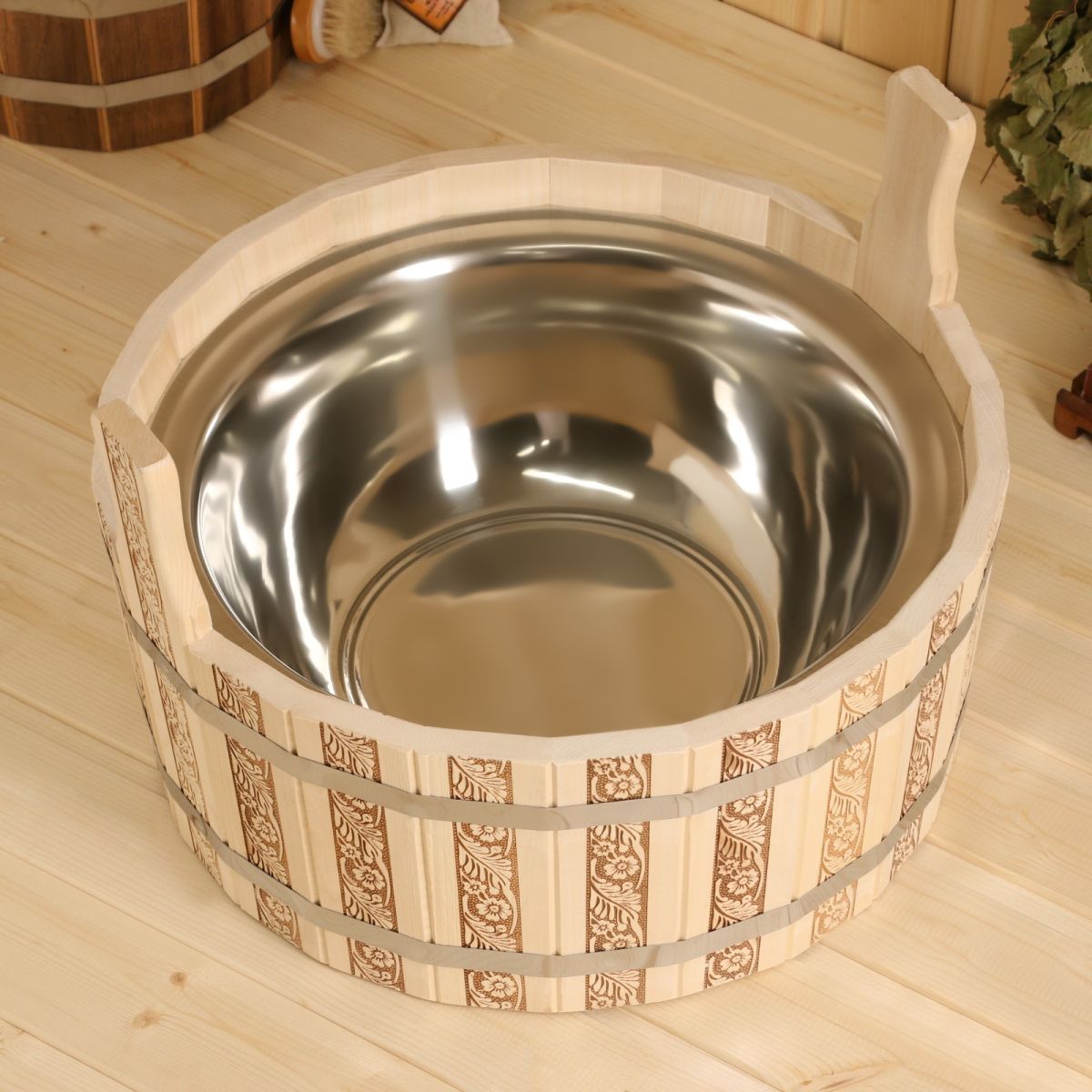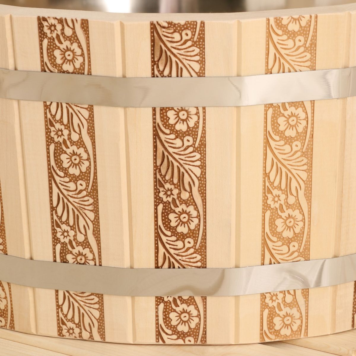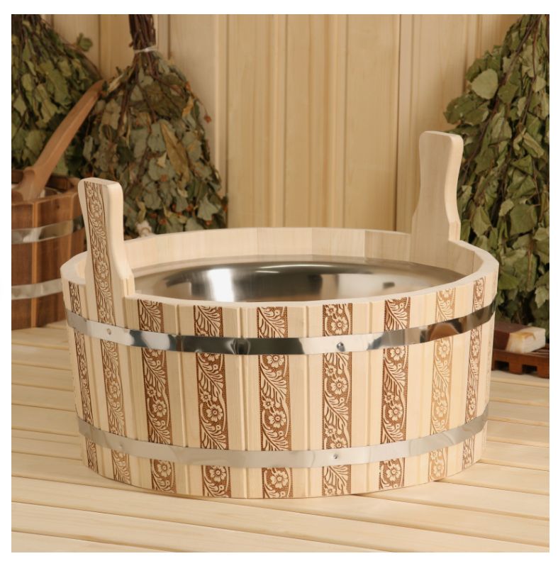Шайка из липы «Русские узоры», 15 л, нержавеющая вставка