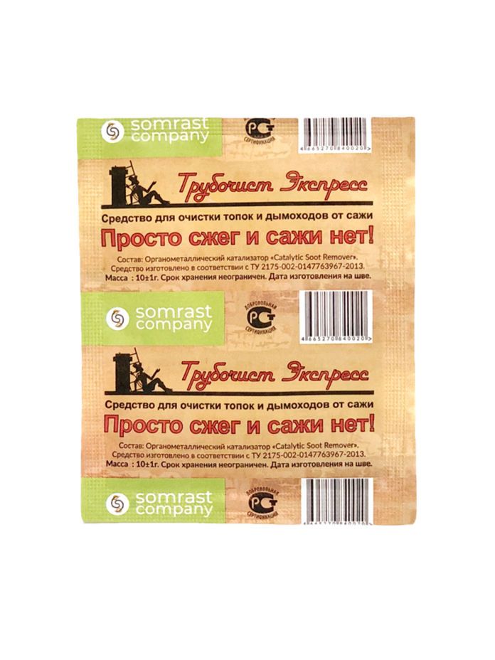 Высокая эффективность подтверждена многочисленными лабораторными и бытовыми испытаниями. Процесс нетоксичен и не вызывает коррозии. Уникальность средства «Трубочист Экспресс» заключается в том, что при его разработке были взяты все положительные и эффективные свойства подобных продуктов отечественного и зарубежного производства. Были учтены и исключены недостатки этих средств. Таким образом, мы получили своеобразную “выжимку” лучших качеств продукта. Дополнив, данный состав комплексной смесью, мы добились более мягкого и высокоэффективного процесса очистки от продуктов горения как твердых, смолистых, так и газообразных.