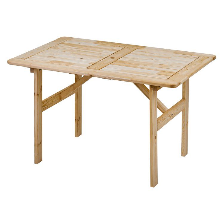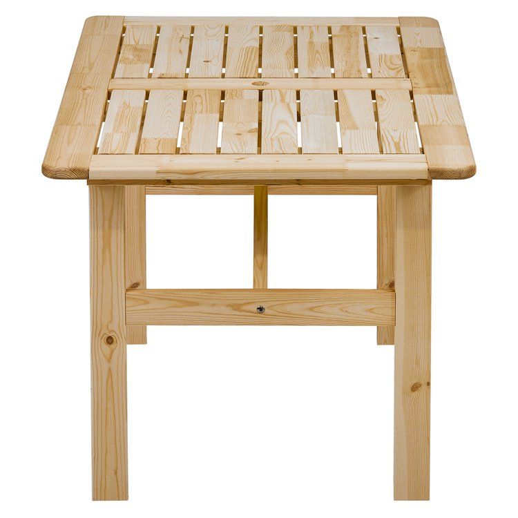 Изящный садовый обеденный стол. При длине 1,2м он комфортно разместит 6 человек. Округлое обрамление решетчатой столешницы. Два продольных распора не позволяют столу раскачиваться. Отверстие в центре стола предназначено для установки зонта, в тени которого ваш отдых станет еще комфортнее. Изделие неокрашенное.