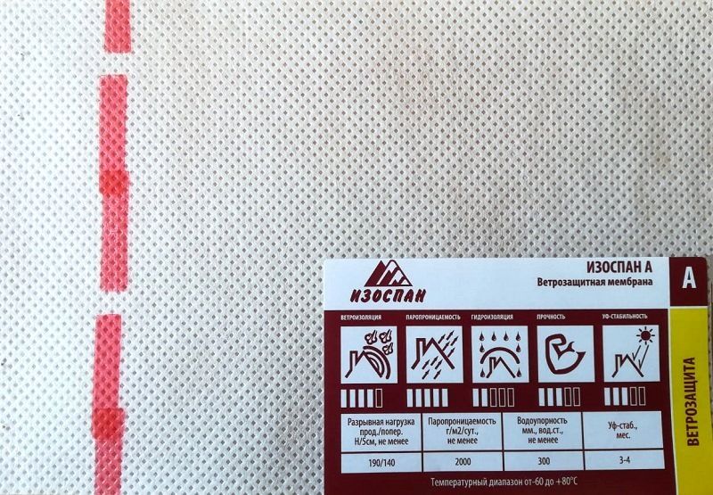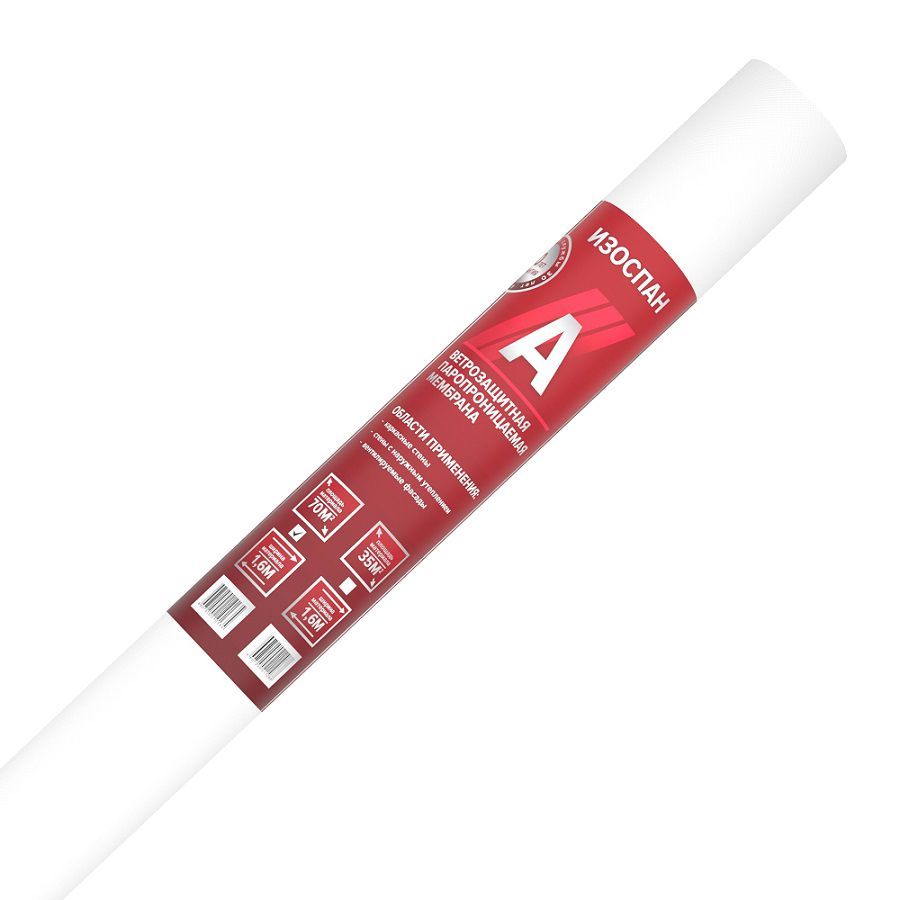 Изоспан A — термоскрепленный полипропиленовый нетканый материал. Ветрозащитная мембрана Изоспан A препятствует конвективному движению воздуха через теплоизоляцию, снижая теплопотери. Изоспан A обладает водоупорностью, достаточной для защиты утеплителя и других внутренних элементов конструкций стен от атмосферных осадков, проникающих под наружную обшивку, при этом является паропроницаемым материалом, поэтому не препятствует выходу водяных паров из утеплителя в вентилируемый зазор. Прочность материала способствует устойчивости к механическим нагрузкам на этапе монтажа и в процессе эксплуатации. Свойства материала Изоспан A позволяют применять его в качестве ветрозащиты в конструкциях каркасных стен, стен с наружным утеплением и вентилируемых фасадов. В конструкциях внутренних стен (межкомнатных перегородок) Изоспан A применяется для предотвращения проникновения частиц волокнистого утеплителя во внутреннее пространство здания. При соблюдении всех требований к монтажу, применение ветрозащитной мембраны Изоспан A позволяет сохранить теплоизоляционные свойства утеплителя и продлить срок службы конструкций.